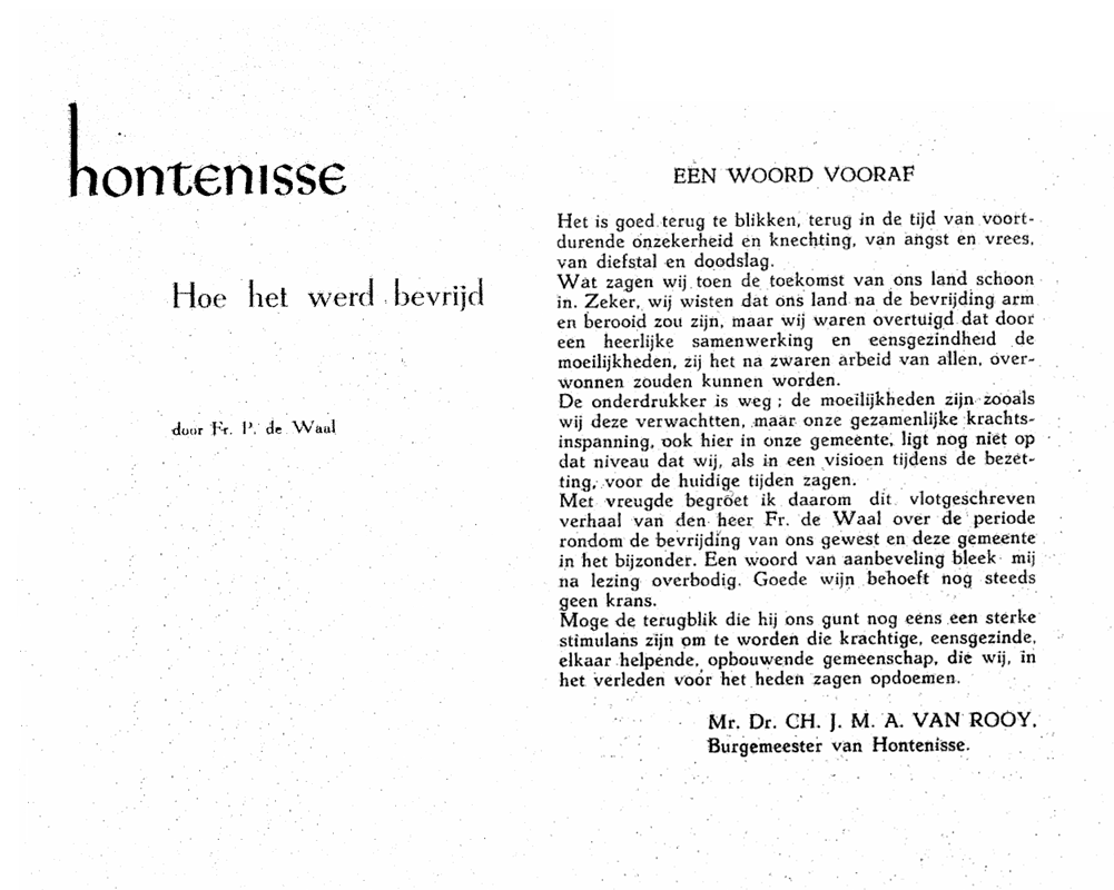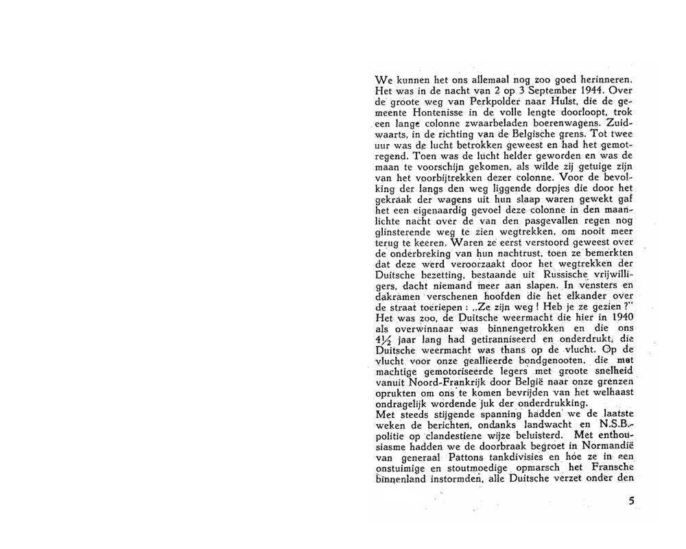 Een vlot geschreven verhaal over de bevrijding van Hontenisse in Zeeuws-Vlaanderen in 1944 tijdens de tweede wereldoorlog.